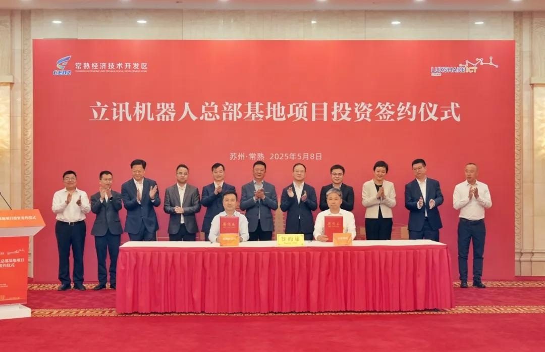 5月8日,年产值超百亿元的立讯机器人总部基地项目签约落户常熟经开区。常熟市委书记虞伟,市委副书记、市长张伟,立讯集团副董事长王来胜等见证签约。