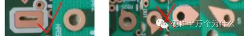 6、单面板若有手焊元件,要开走锡槽,方向与过锡方向相反,宽度视孔的大小为0.3mm到0.8mm;如下图:ujdSMT技术网-China表面贴装技术-SMT表面贴装-SMT技术网【官网】
