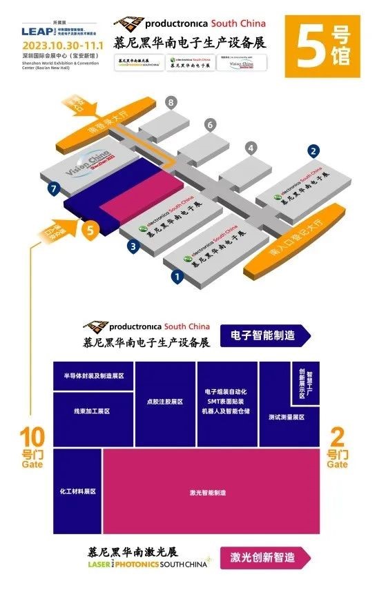 2023年华南国际智能制造、先进电子及激光技术博览会(简称LEAP Expo)旗下成员展慕尼黑华南电子生产设备展将于10月30-11月1日,再次登陆深圳国际会展中心(宝安新馆)。展会将围绕先进封装、新能源线束及连接技术、新能源汽车电子技术、电子组装自动化、点胶注胶、 SMT、智慧工厂、智能检测、元器件制造、机器人及智能仓储、运动控制与驱动技术、微组装等领域,立足行业前沿,聚焦新旧动能转换,为电子智能制造行业提供一个横跨产业上下游的专业交流圈。